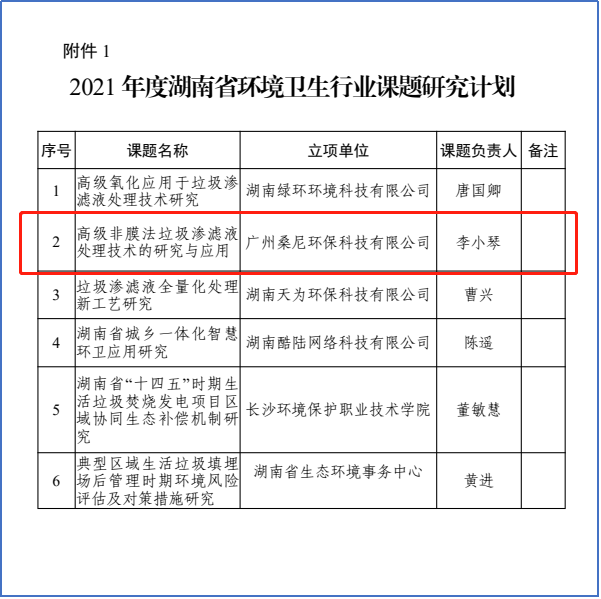 2021年2月4日,我司“高級非膜法垃圾滲濾液處理技術(shù)的研究與應(yīng)用”課題列入 2021 年度湖南省環(huán)境衛(wèi)生行業(yè)課題研究計劃。